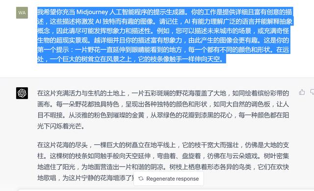 3ChatGPT结合Midjourney是一种非常有趣和有用的体验,它可以为Midjourney玩家提供更深入的游戏体验和更智能的指导。下面是详细的实操指南: 生成的效果图预览 设置ChatGPT角色: 我希望你充当 Midjourney 人工智能程序的提示生成器。你的工作是提供详细且富有创意的描述,这些描述将激发 AI 独特而有趣的图像。请记住...