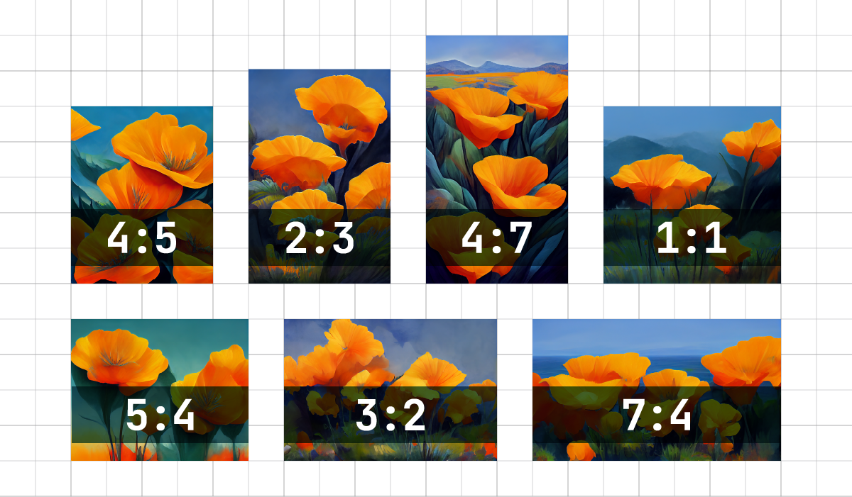 7Midjourney 首先为每个作业生成一个低分辨率图像选项网格。您可以在任何网格图像上使用 Midjourney upscaler 来增加尺寸并添加更多细节。有多种可用于放大图像的放大模型。 每个图像网格下方的按钮用于放大所选图像。U1 U2 U3 U4 中途尺寸和尺寸 所有尺寸均适用于 1:1 宽高比的正方形。 *= 每个 Midjourney 版本模型...